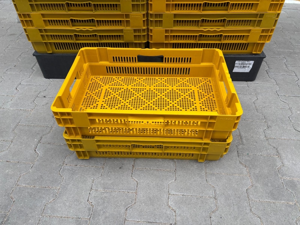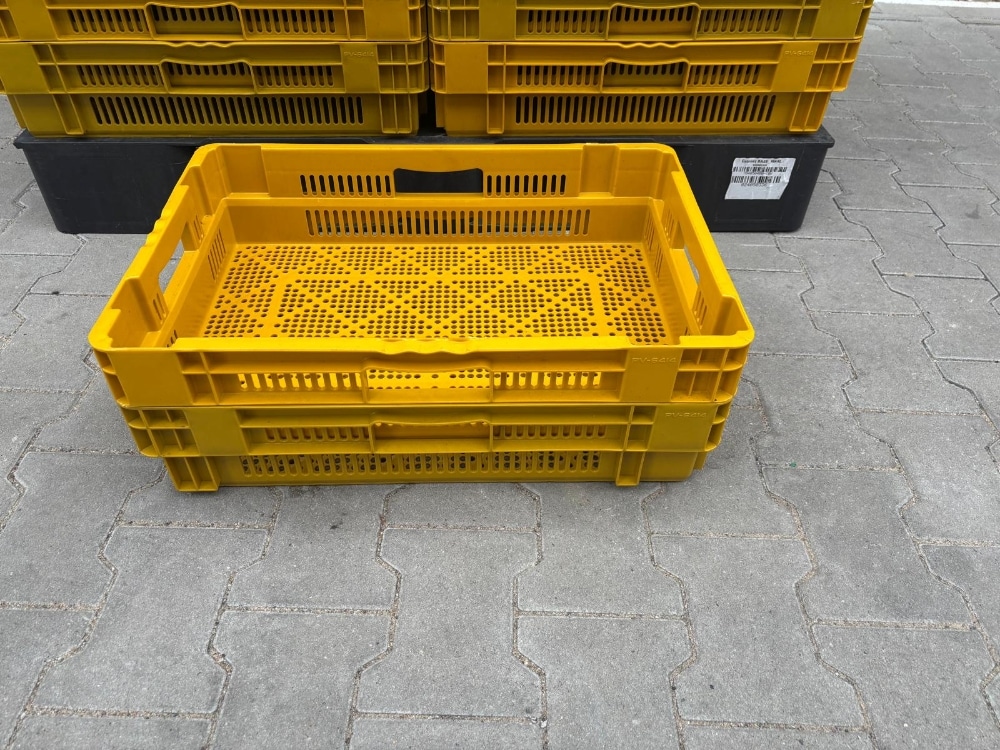 Palletdeal 100 stuks: Kunststof kip kratten 600x400x140 mm – Geel – Gebruikt
