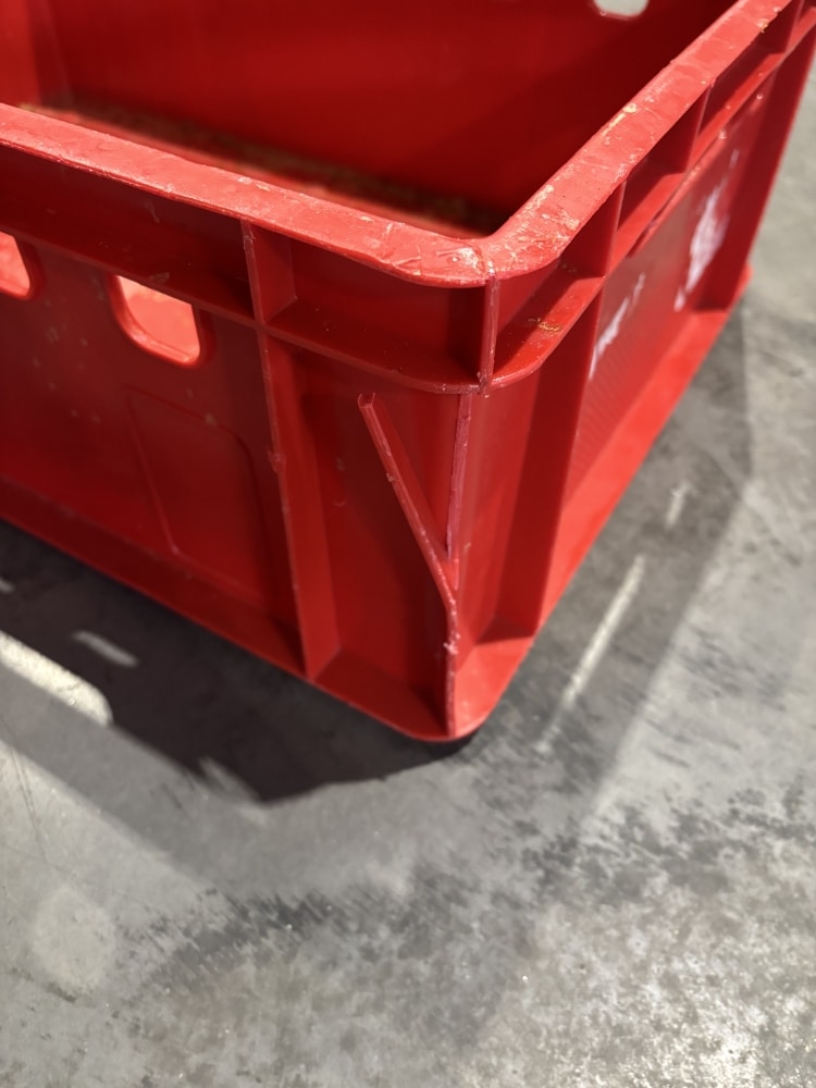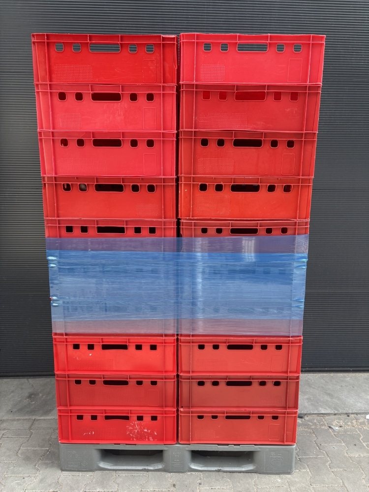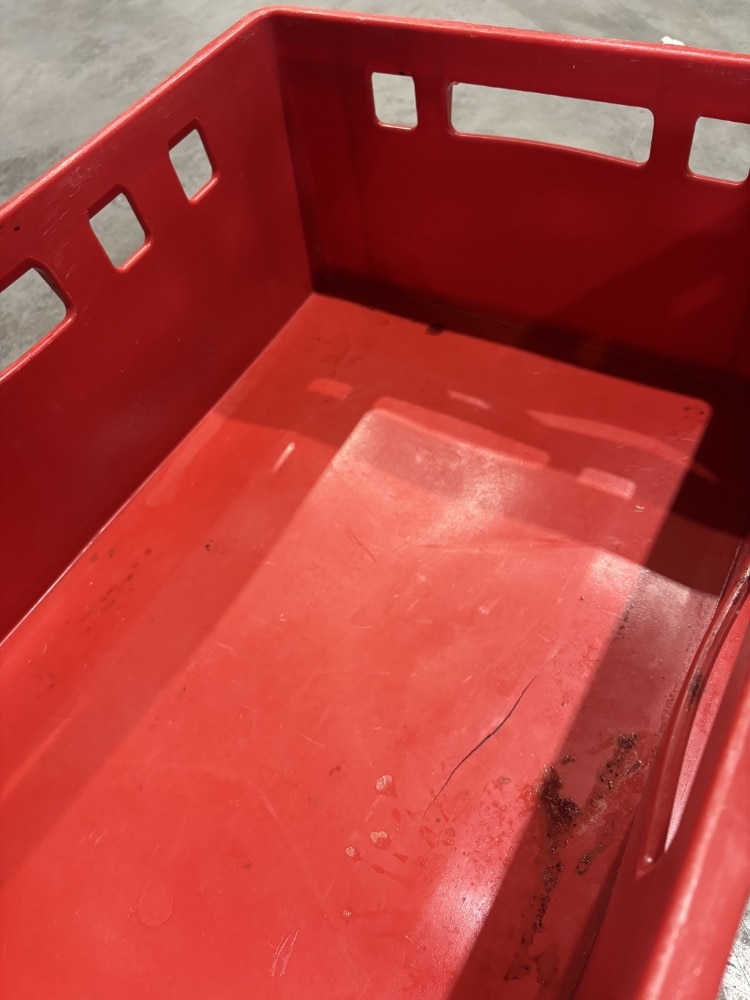 Palletdeal 40 stuks: Kunststof E2 Stapelbakken (Vleeskratten) 600x400x200 mm – 41 Liter – Rood – Gebruikt
