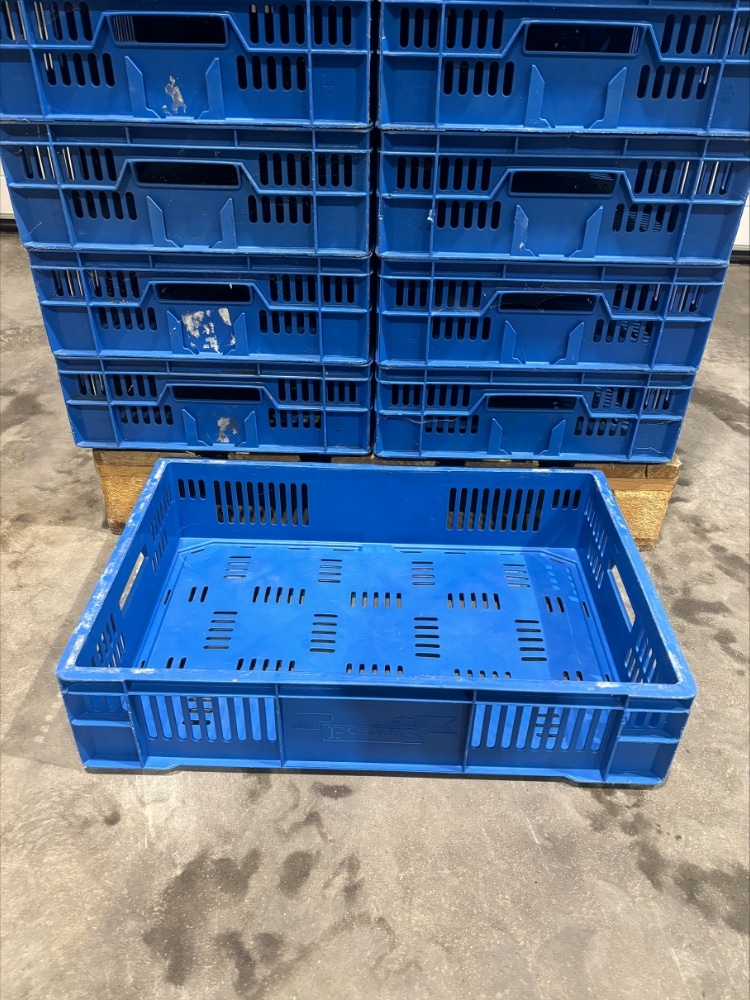 60 stuks kunststof fruitkrat / vershoud kratten 600x400x140 mm – Blauw – Gebruikt